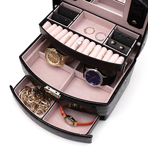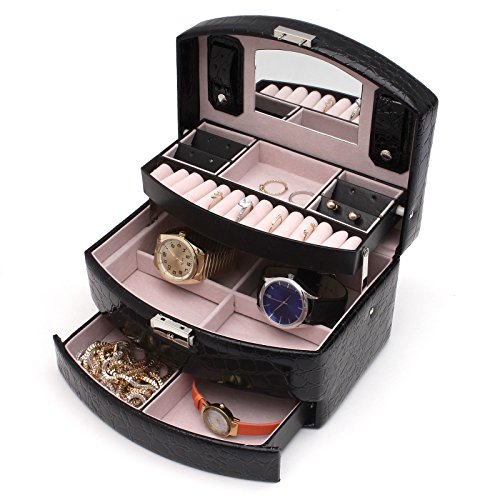 -. Binding : Kitchen -. Brand : NuLink -. EAN : 0683258993562 -. Feature : STYLISH DESIGN: Prefect and compact way to keep rings and other small jewelry organized in one place. 3 different layers to separate jewelries & rings / TOP QUAILTY: Made of quailty black leather and quailty velvet. Fully protection for your value or beloved jewelry from scratch and damaged / EASY & CONVIENCE LOCK & KEY: Build in convience lock and key to protect valueable jewelry steal. Prefect case and most safe way to protect personal items. / PRODUCT SPECIFICATION: Exterior Color: Black; Material: PU Leather, Velvet; Finish: Crocodile Finished Texture; Box Size: 9" x 6.75" x 5.25" (LxWxH); Fits: Up to 13 rings, and 11 compartments for small miscellaneous jewelry / All NuLink products GUARANTEE defect free/ damaged & come with 1 Year warranty. Message us if you have any problems -. IsAutographed : 0 -. Label : NuLink -. Manufacturer : NuLink -. MPN : NL-JD168-15BK -. PackageQuantity : 1 -. PartNumber : NL-JD168-15BK -. ProductGroup : Home -. ProductTypeName : HOME -. Publisher : NuLink -. Studio : NuLink -. Title : Nulink™ Black Leather 3 Layers Jewelry Box Storage Organizer Case with Mirror, Lock & Key [NL-16815BK] -. UPC : 683258993562