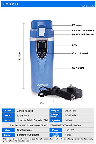 - STYLISH APPEARANCE -- ▶"EASYWAY" electric heating cup is a brand product of our "SIQIWO" company. When you buy "EASYWAY" car heating cup, please confirm that it is a shopping cart provided by "SIQIWO" shop and other electronic heating cup sold by other shops Is a problem product, please do not believe to buy◀.white, blue, red to choose from, the appearance of new, high-end fashion, liquid crystal display, cover, easy to use.