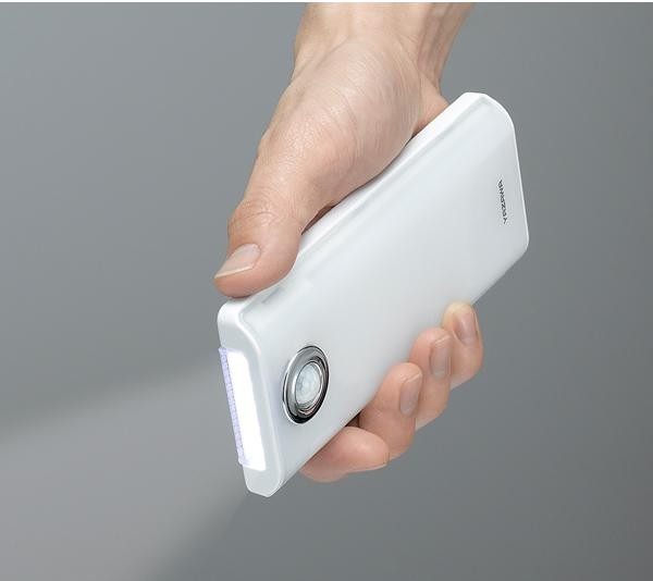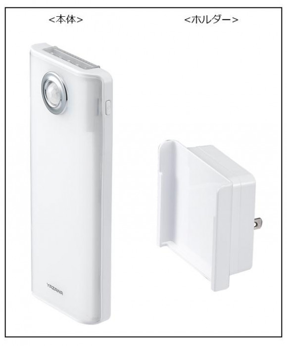 | 人が通ると自動で点灯するナイトライト。ホルダーから引き抜けばスリムな懐中電灯としても使用できます。発光する面が広いため、明るさが周囲まで大きく広がります。電池切れが気にならないコンセント差込みタイプで、停電時には自動で点灯します。 |