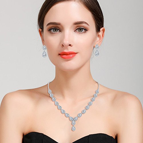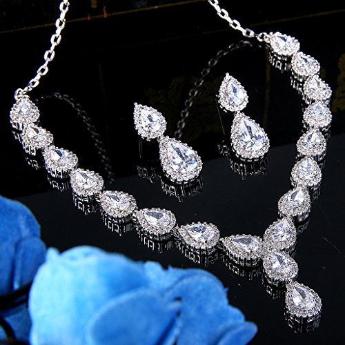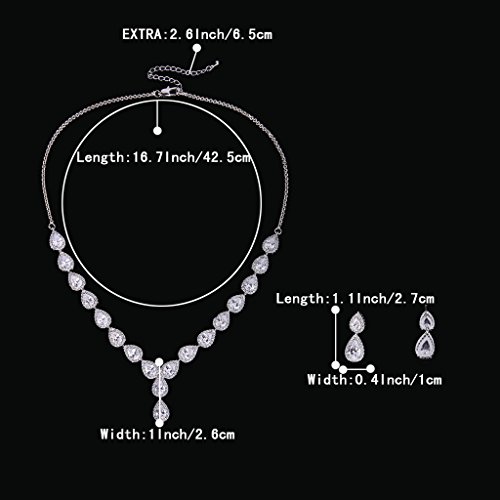 -. Feature : ♥Material & Craft♥: Adorned with Hearts & Arrows Cut Cubic Zirconia, crafted with eco-friendly brass, this specific design is born to match the clothes and your unique beauty. / ♥Specifications & Size♥: Necklace: Pendant Size: 6.9*1 in; Chain Length (Adjustable): 16.7-19.5 in. Earrings Size (Pierced): 1.1*0.4 in. Total Weight: 27g. / ♥Occasions For♥: Suitable for wedding, engagement, graduation, party, prom, daily wear and any event to be beautiful goddess. Searching for brilliant jewelry? Click on ♥BriLove♥! / ♥Considerate Gift For♥: Comes with an exquisite gift pouch or box. Caring and surP.R.Ise gift idea for your best friend, lover, girlfriend, fiancee, wife, mother on Christmas, Birthday, Anniversary, Valentine's Day, Mother's Day. / ♥Lifetime Guarantee♥: Estimated delivery for about 7-15 days. 30-day MoneyBack Guarantee & 100% Lifetime Guarantee for any non-artificial factor.