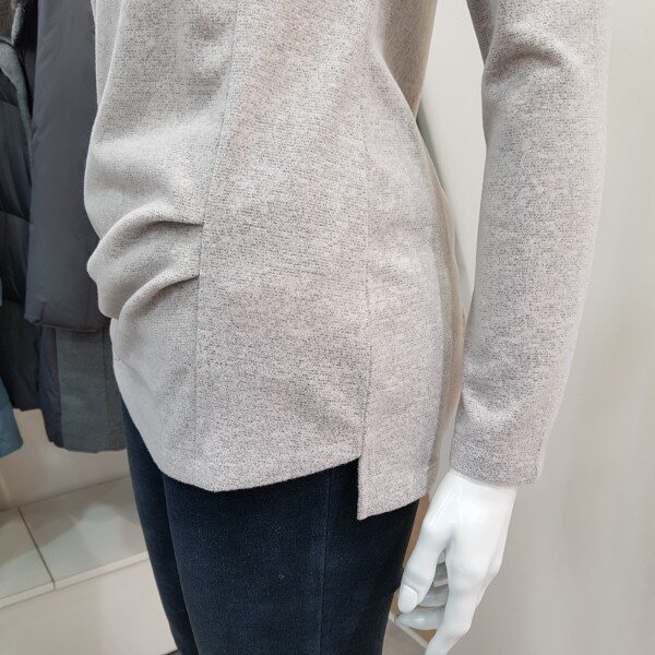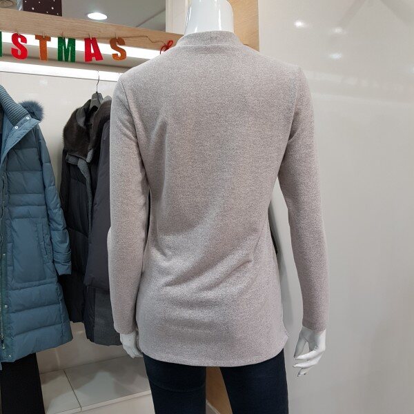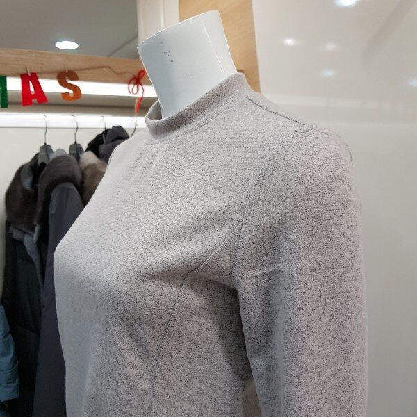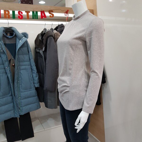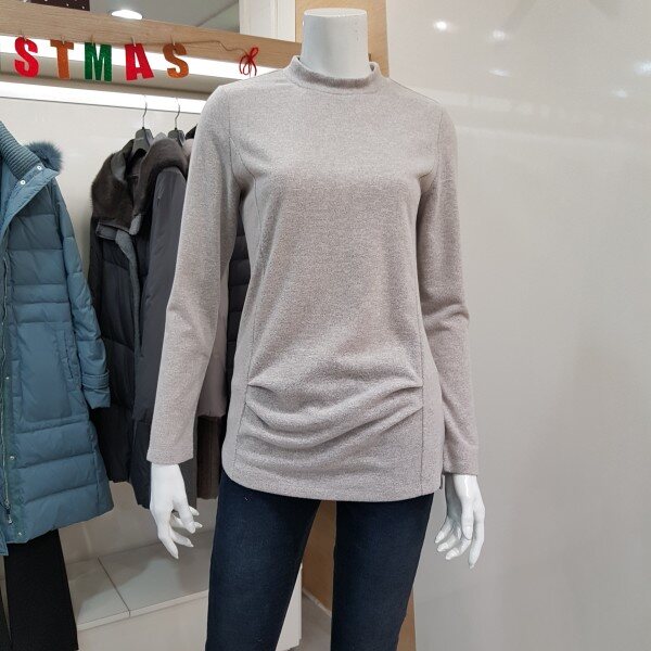 기본 반하이넥 티셔츠입니다. 배부분에 셔링 포인트를 주어 커버할수 있는 스타일입니다.
