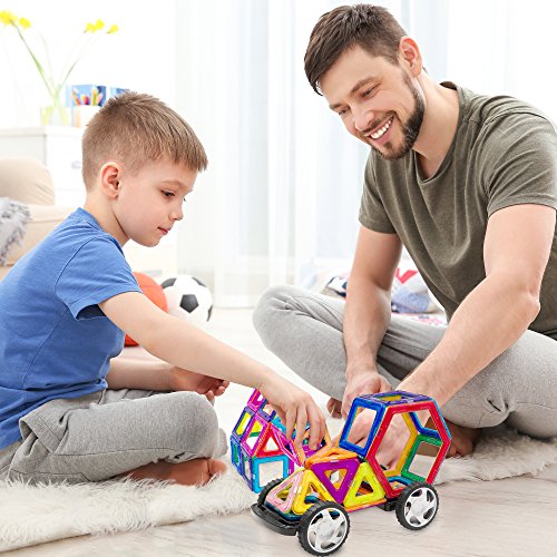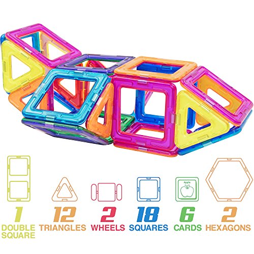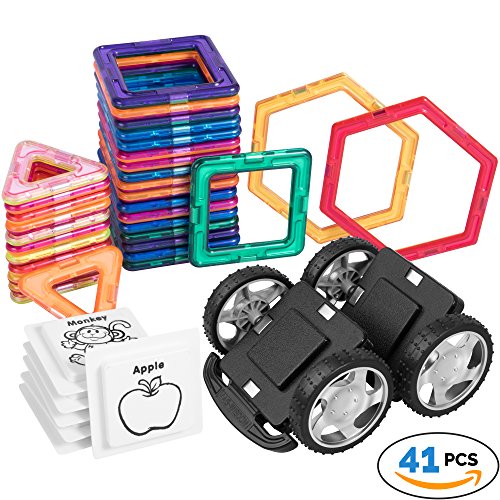 Our 41 pc set has wheels for building cars and trucks your child can play with. Our blocks are ideal for the beginner because the powerful magnets attach to each other with ease, and stay together until your child is ready to take them apart and make another creation.