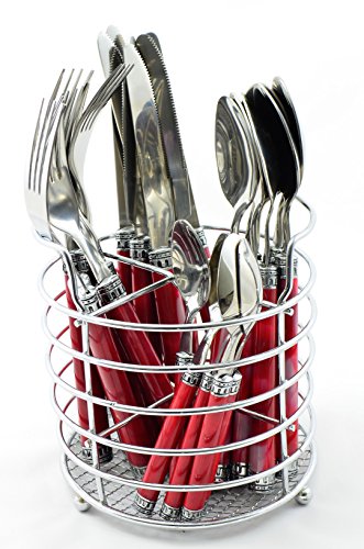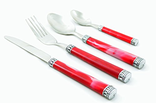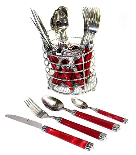 Nature Home Decor RE6125 Rainbow Elite Collection Flatware Set of 24-Piece Service of Six with Elegant Red Marble Design Resin Handles and Stainless Steel Storage Caddy