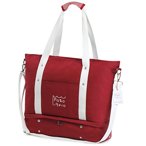 -. Title : PasoLigero トートバッグ マザーズバッグ キャリーバッグ ショルダーバッグ ジムバッグ メンズ レディース 大容量 2層式 弁当・靴収納 A4サイズ キャンバス ポーチ付き 2WAY 軽量 人気 多機能