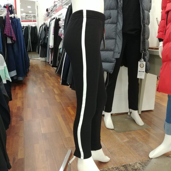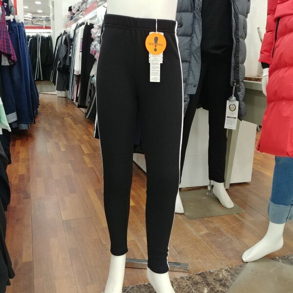 밍크 털이 잔잔하게 깔린 스판 겨울 레깅스입니다.핏도 좋으면서 탄력성도 매우 좋은 겨울 레깅스입니다.블랙 바탕에 화이트 2선이 돋보입니다.