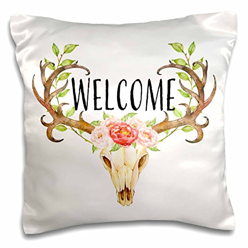 3D Rose Welcome Floral Cow Skull Illustration Pillow Cases, 16" x 16"
