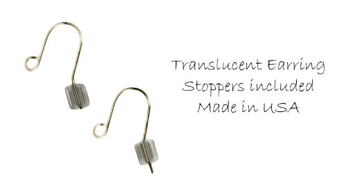 Earwire 14k Solid Yellow Gold Fishhook Earring Parts w/ Stoppers .016" Ultra Lt Wt Tiny Pair