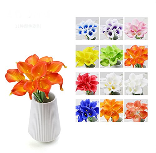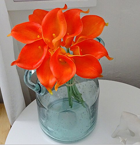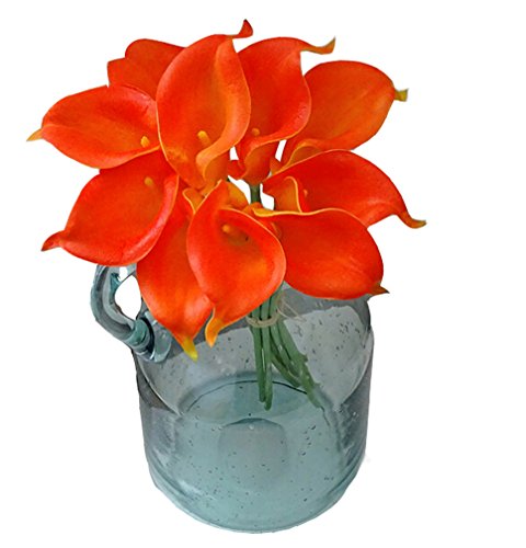 Flyusa 10 Pcs Calla Lily Bridal Wedding Bouquet Head Real Touch Flower Bouquets Artificial Flowers for Home Party Decoration(Orange)