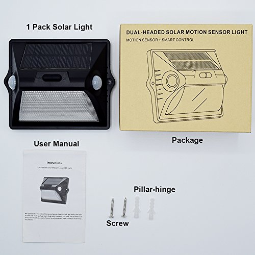 - What You Get: 12 LED Solar Lights, Two Screws, Two Expansion Pillar-Hinges, Two 3M Double Side Tapes,User Manual,Our 18-month worry-free warranty and friendly customer service.