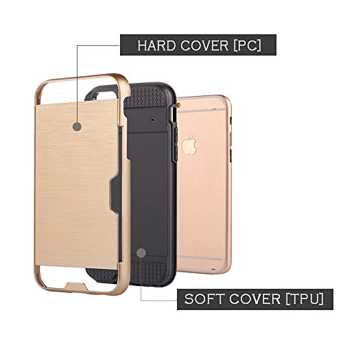 Leesentec Protective Heavy Duty Case for iPhone 6s 4.7 inch Double Layer Shock Absorbing Tough Cover with Bumper Card ID Slot Golden