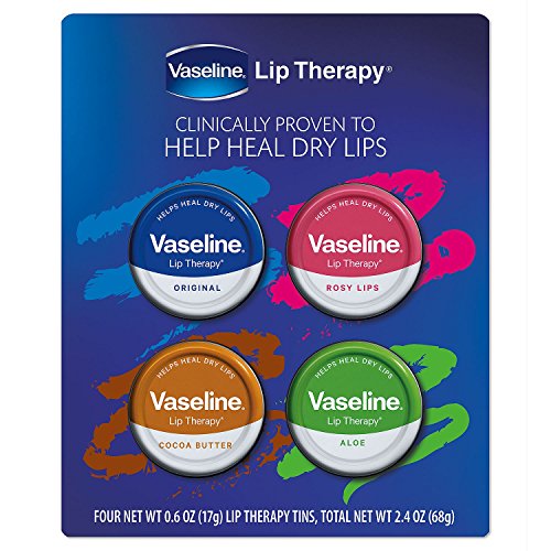 Studio : Vaseline Publisher : Vaseline Binding : Health and Beauty Product Description Vaseline Lip Therapy is clinically proven to help heal dry lips. Product Features: Provides long-lasting miniaturization to help heal dry lips Non-sticky, non-greasy formula spreads on smoothly Includes 1 Original, 1 Rosy Lips, 1 Cocoa Butter and 1 Aloe Tin 0
