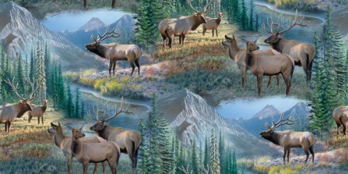 Wild Wings Mountain Sky Elk Scenic Fabric by The Yard, 43/44-Inch Wide, Multi-Colored