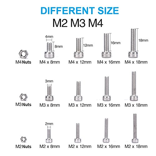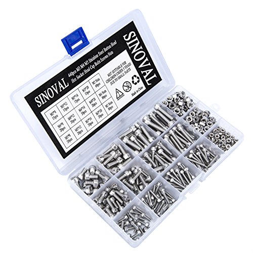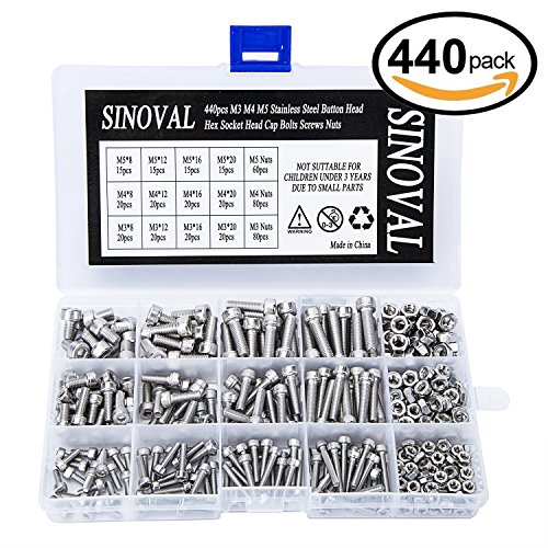 SINOVAL 440Pcs M3 M4 M5 Stainless Steel Button Head Hex Socket Head Cap Bolts Screws Nuts Assortment Kit