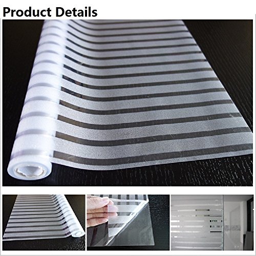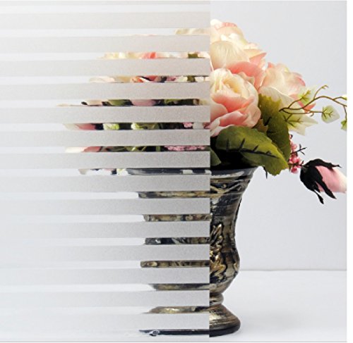 Bold Stripe Window Film No-glue Decorative Privacy Glass Window Film Non-adhesive Frosted Static Cling Stained Glass Window Film for Office Home Bathroom 17.7-by-78.7 Inches