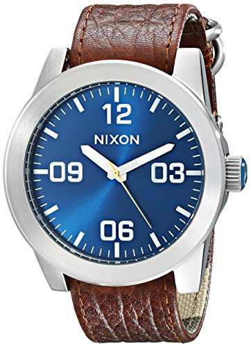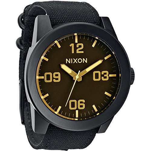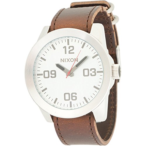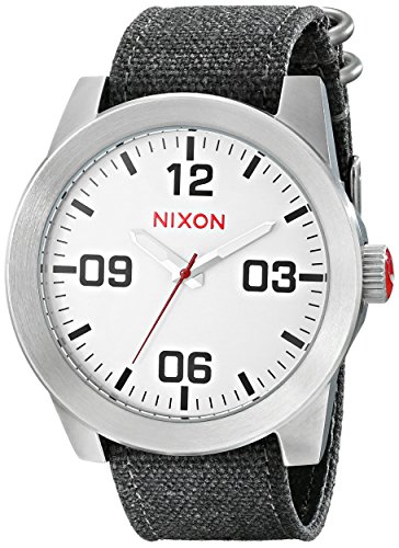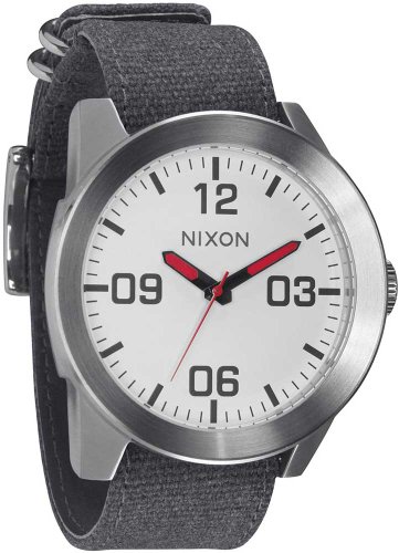 Studio : Nixon Publisher : Nixon Binding : Watch Product Description Reporting for duty with the new Nixon The Corporal wrist watch. Whether it's need for great looks or a rugged lifestyle the Corporal men's watch can with stand the pressure. With a stainless and enamel case and a modern day design The Corporal doesn't beat around the bush. Sign up today for the future of watches. PRODUCT FEATURES: Movement: Miyota Japanese quartz 3 hand. Dial: The dial includes military inspired bold printed indices and numbers, a printed seconds track and custom molded hands with luminous fill. Case: 48 mm, 100 meter/ 10ATM custom solid stainless steel case with a solid stainless steel fixed bezel, hardened mineral crystal, triple gasket crown with enamel fill, stainless steel screw down caseback and spring pin lugs. Band: 24 mm genuine leather or canvas with genuine leather backing and custom stainless steel buckle and keepers. A243 , Nixon The Corporal , nixon , nixon watches , nixon Corporal , the Corporal , the Corporal watches , the Corporal nixon watches , nixon mens watches , nixon the Corporal mens watch , wrist watches , automatic watches , sports watches , digital sports watch , ironman watches , running watches , led watches , watches , casual watches , classic watches , watches , wrist watches , mens watches , mens wrist watches , watches for men , watches mens , wrist watches for men , nixon , nixon mens watches , nixon mens wrist watches , nixon mens classic watches 0