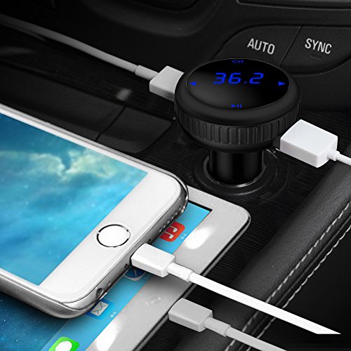 - High-Quqlity Bluetooth Transmitter - More stable FM signal, better anti-interference performance, enhanced sound experience and built-in microphone with Echo cancellation and noise suppression (CVC) technology, offer your hands-free talking and wonderful music.
