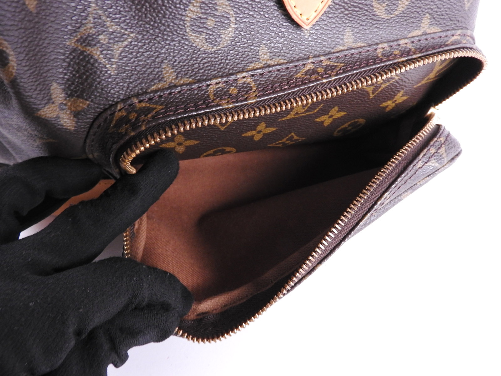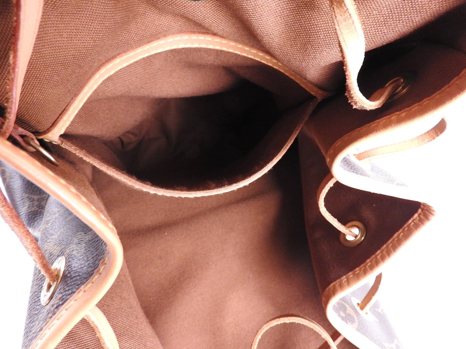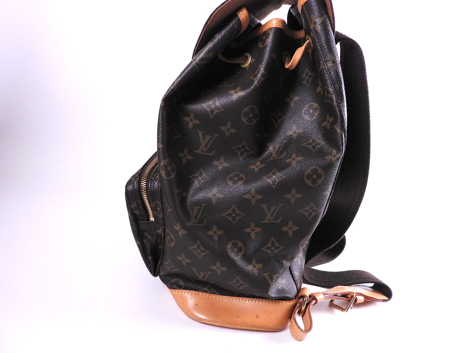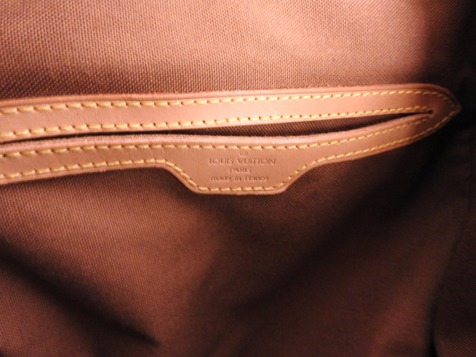 | Exterior | Monogram: Slightly used feeling. Slight fading and wrinkles.? ? Leather: Used feeling. Some scratches, stains, abrasions and tanning. |