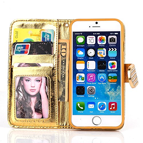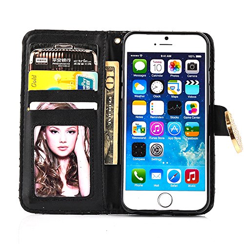 -. Feature : Perfectly fit for Apple iPhone 6/6S Plus(5.5). / Be made of PU Leather material / Built-in credit card slots and money pocket; Support hands-free video watching with self stand; / Protect your phone from dust fingerprints,dents, scratches and bumps. / Precise openings allow direct access to all features of the phone without removing the case.