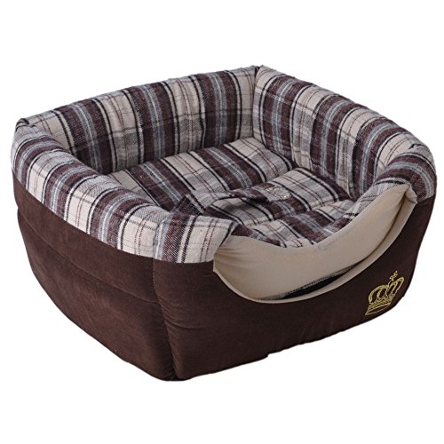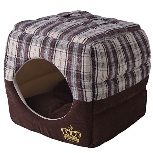 (EXPAWLORER)/Pet Supplies/Beds Furniture/DIRECT FROM USA/Soft Plaid Cat Cube House, 2-in-1 Deluxe Pet Bed for Small Dogs, Classic Fashion Royal Crown Wi...
