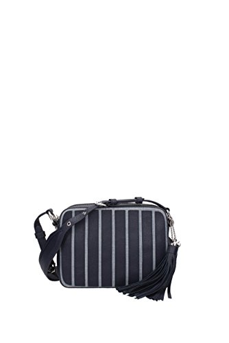 -. Feature : Zip closure / Silver-toned hardware, Hanging leather tassels / denim panelling, two interior slip pockets, interior zipped pocket / adjustable shoulder strap, embossed brand charm, brand lining / Size: 7"H x 9.3"L x 3"D, Dust bag included