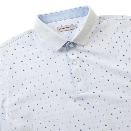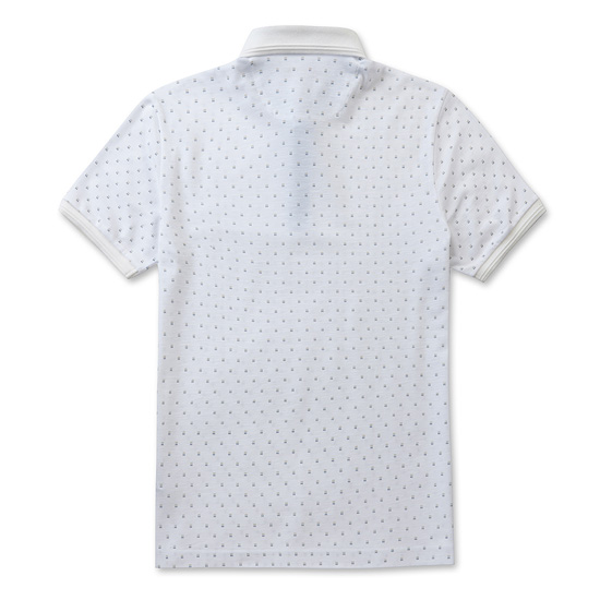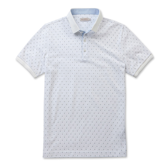 - 캐쥬얼한 컬러 프린트가 돋보이는 반팔 카라 티셔츠.