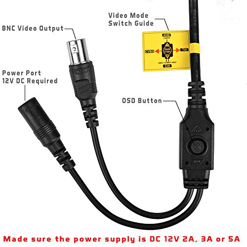 -. Feature : CRISP IMAGE: 1/2.9-inch Sony Exmor sensor & megapixel Lens for crystal clear image. Low Illumination, D-WDR, AGC, AWB, 3DNR and multiple OSD adjustments for optimal picture quality in any given lighting condition. / ENHANCED NIGHT VISION: Latest tech anti-reflection black film panel, IR filter and upgraded Led with 100-130 feet Long range IR for superior image at night. / GREAT LOW LIGHT IMAGE: SONY Exmor image sensor with NIR and LOW ILLUMINATION technology applied, it performs great image with little ambient light. / 4 MODES OUTPUT: 2 Megapixel HD-TVI, 2.0MP HDCVI, 2.0 MP AHD and 1200 tvl wired BNC video output. / PEACE OF MIND WARRANTY: 60 DAY money back guarantee, 24 MONTH warranty and friendly, easy-to-reach support; Power supply (Need DC 12V 2A), coaxial video cable and DVR are NOT INCLUDED but REQUIRED.