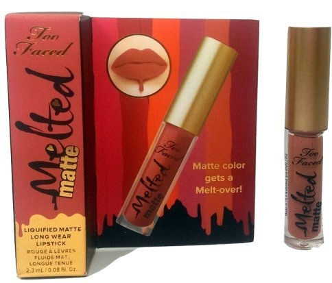 -. Binding : Misc. -. Brand : Too Faced -. EAN : 0651986974030 -. Feature : Sell Out is a soft pinky-brown shade with matte finish / Glides over lips like a gloss but dries to an ultra-matte opaque finish / Infused with a no-sting lip plumper and filler / Intense, saturated matte color lasts for hours / .08 Fl Oz/2.3 mL Travel size -. IsAdultProduct : 0 -. Label : Too faced -. Manufacturer : Too faced -. MPN : S -. PackageQuantity : 1 -. PartNumber : S -. ProductGroup : Beauty -. ProductTypeName : BEAUTY -. Publisher : Too faced -. Studio : Too faced -. Title : Too Faced Melted Matte Liquified Matte Lipstick ~ Sell Out .08 Fl Oz Travel Size -. UPC : 651986974030