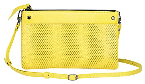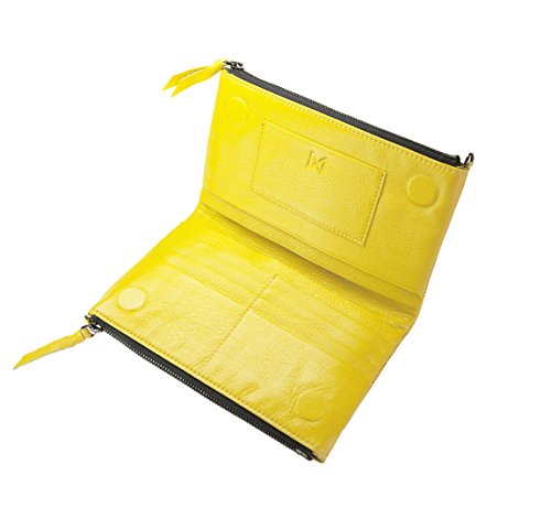 LA Leather Handbags Leather Wallet and Crossbody Bag with Gunmetal Hardware, Yellow