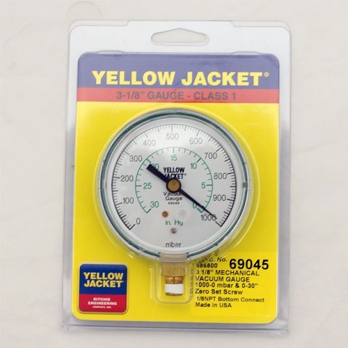 Yellow Jacket 69045 Vacuum Gauge European Version (1000-0 Millibar/30-0"), 3 1/8"