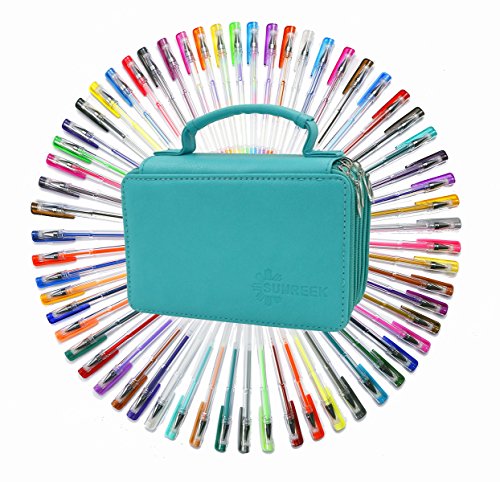 60 Assorted Colors Gel Pen Set with 72 Slots PU Leather Travel Case, for Sketching, Drawing, Painting, Writing & Custom Artistic Creations Adult Coloring Books (60 PCS, Green)