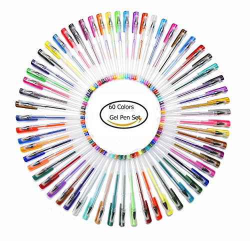 - HIGH QUALITY AND BEAUTIFUL SET OF 60 GEL PENS - includes 60 long-lasting gel ink pens: 16 Glitter, 12 Metallic, 10 Fluorescence, 12 Pastel, 4 Standard and 6 Neon Pens. Neon, Pastel, Metallic, Glitter, Fluorescence, Milky, Multi Colored, & More! Vibrant rainbow set of swirls & colors including Red, Blue, Green, Purple, Yellow, Orange, Black, White, and More!