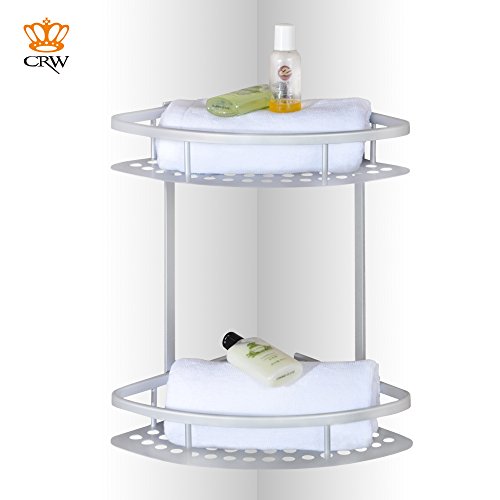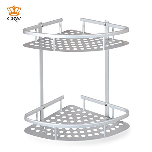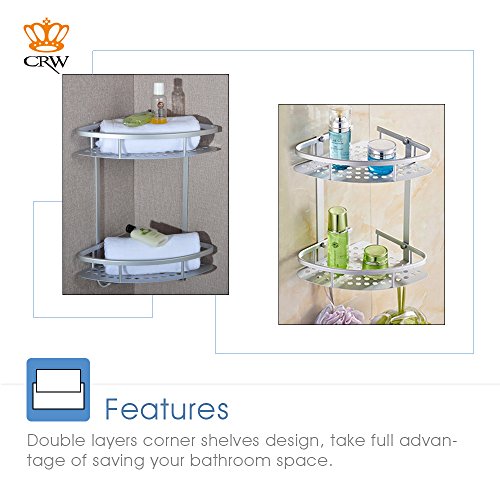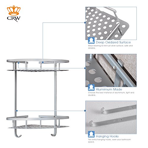 CRW Anti-rust Wall Mounted Space Aluminum 2-Tier Shower Caddy Shelf Bathroom Corner Bath Rack Storage Basket with Hooks(Screws Included) CS1511
