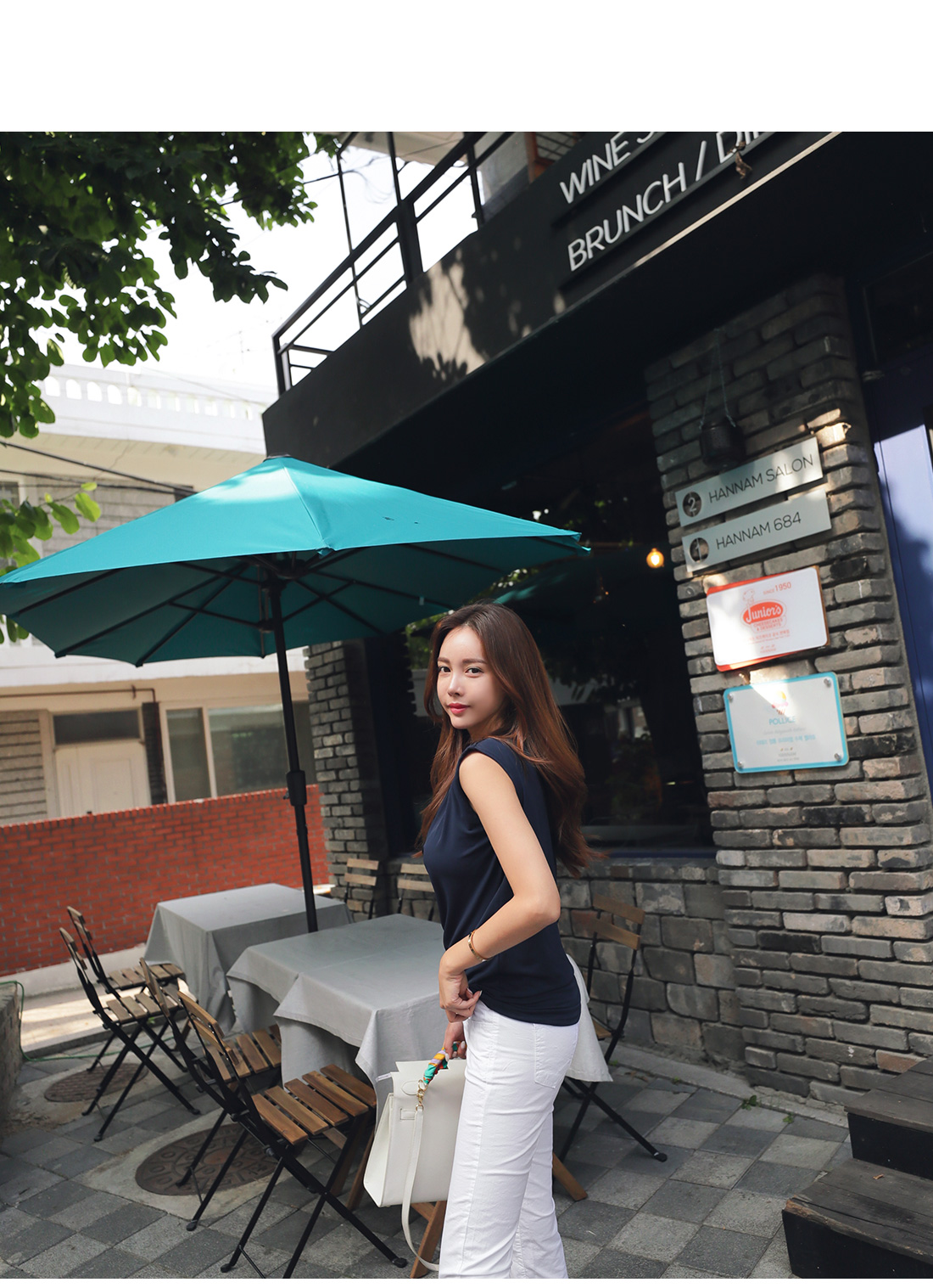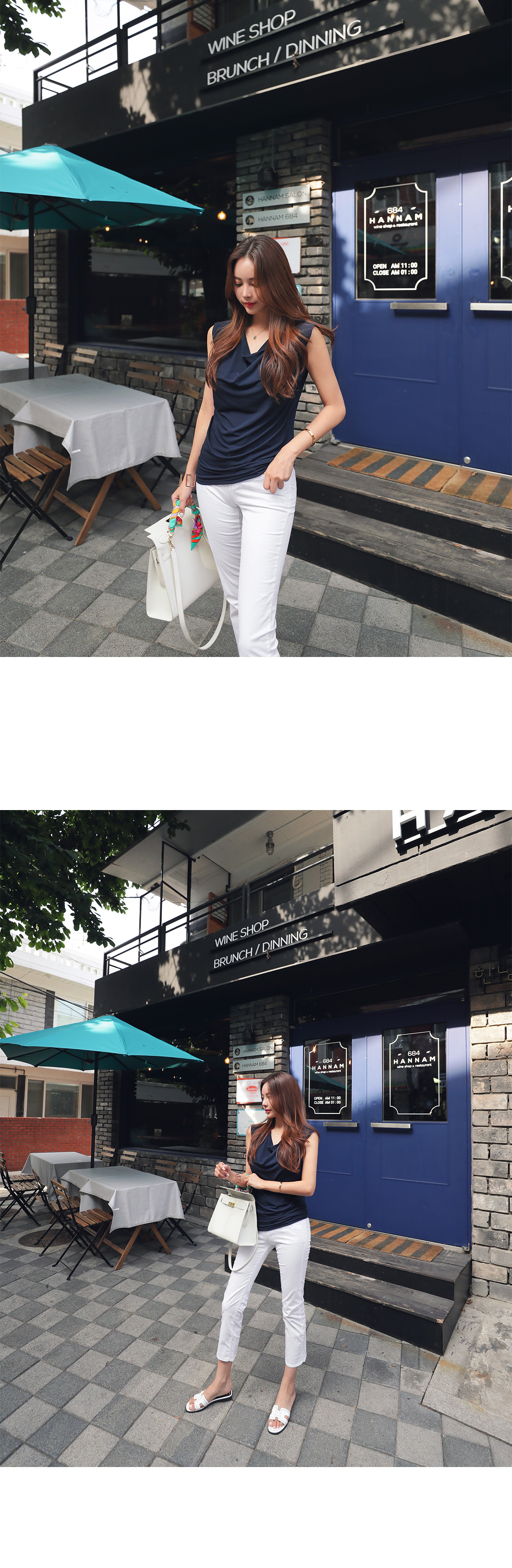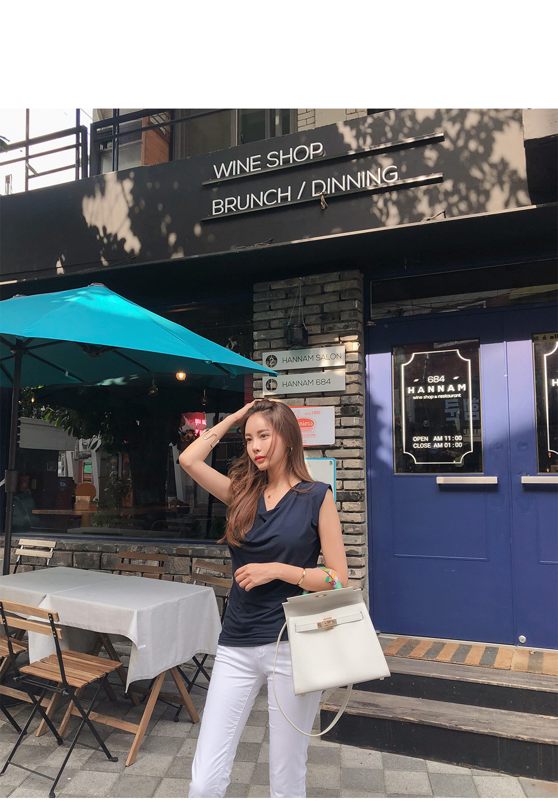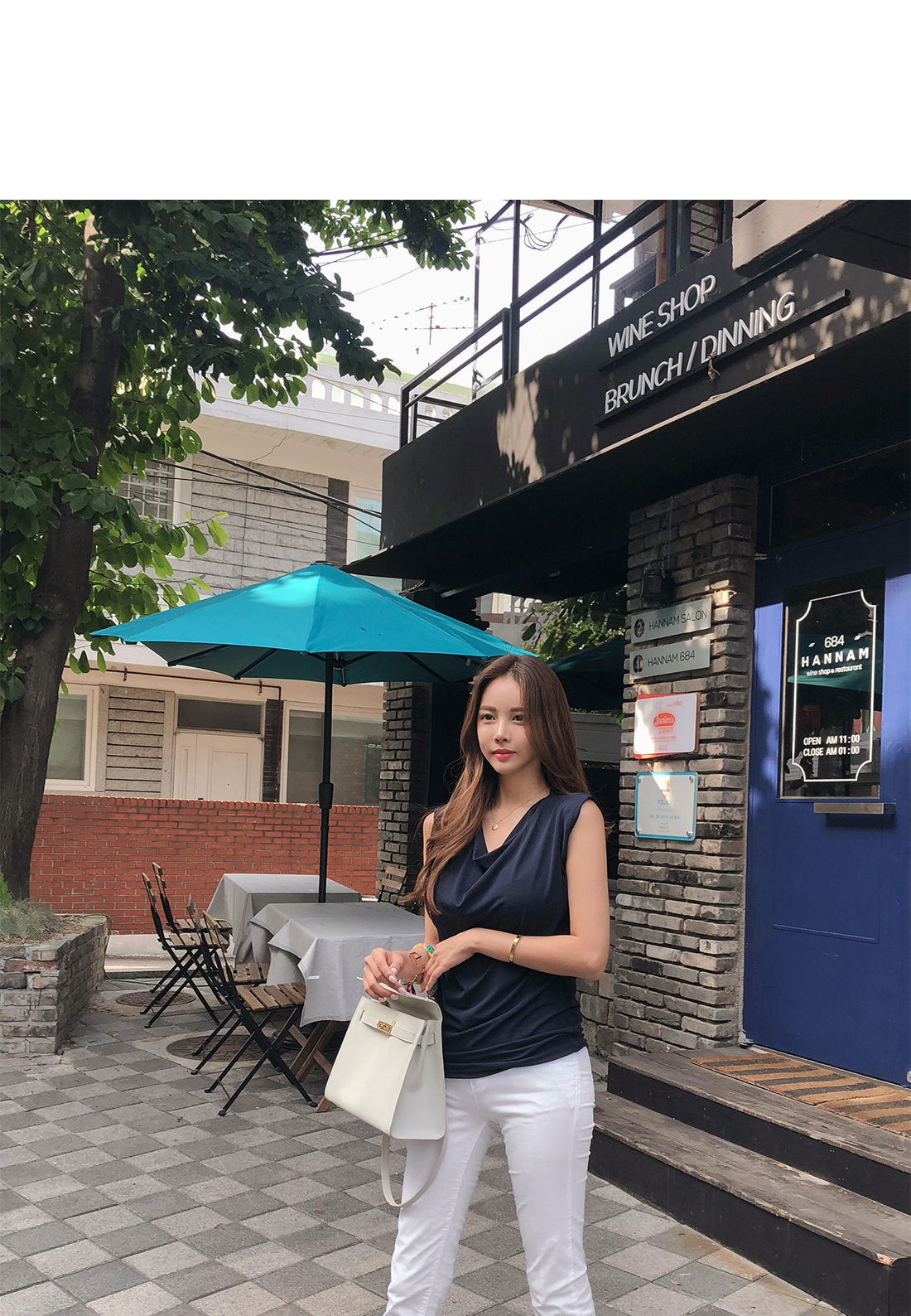 MD COMMENT 자연스럽게 지는 드레이프 디테일이포인트로 들어가여성스러운 무드를 더한 나시랍니다.민소매 디자인으로 시원하고 가볍게 입기 좋으며심플한 디자인으로다양한 코디에 매치하기 좋아요.부드럽고 신축성 좋은 소재로편안한 착용감을 자랑한답니다.한 여름에는 단품으로만 입어도 예쁘며가디건이나 자켓 속에 이너로연출해도 잘 어울려 다양하게 활용하기 좋아요.컬러는 네이비, 블랙 아이보리,블루, 핑크로 구성되었답니다.COLOR/SIZE 네이비,아이보리,블루,핑크,블랙FREEMODEL FITTING 네이비/FREE