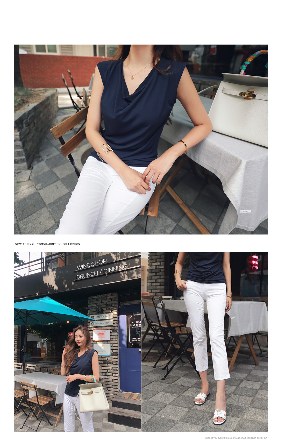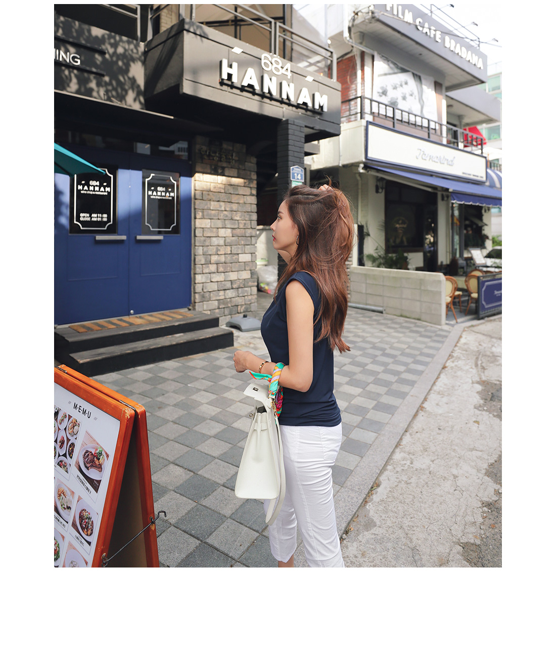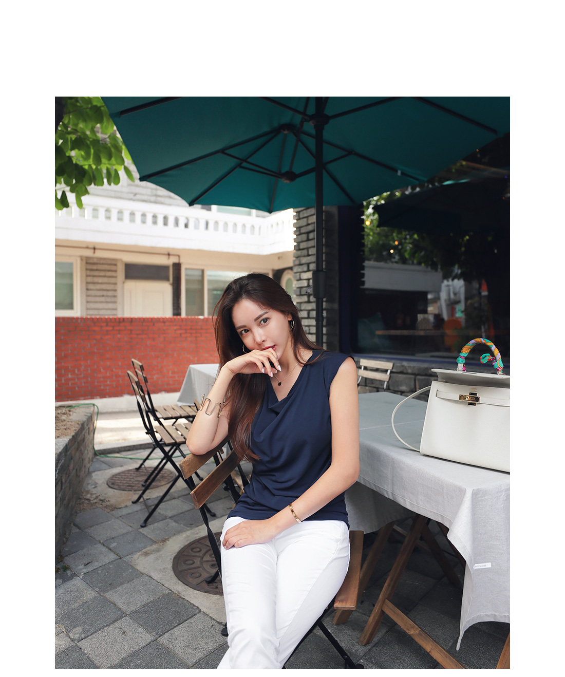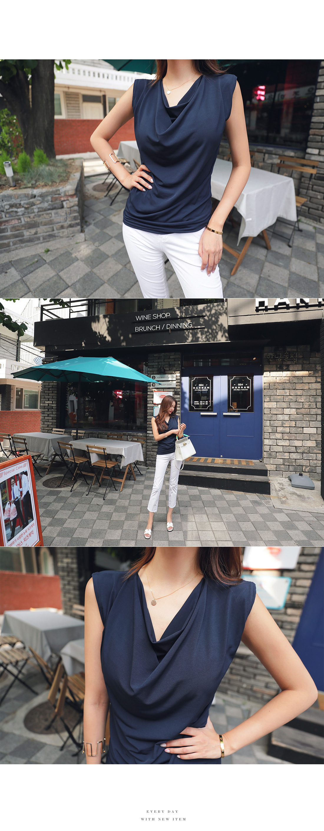 MD COMMENT 자연스럽게 지는 드레이프 디테일이포인트로 들어가여성스러운 무드를 더한 나시랍니다.민소매 디자인으로 시원하고 가볍게 입기 좋으며심플한 디자인으로다양한 코디에 매치하기 좋아요.부드럽고 신축성 좋은 소재로편안한 착용감을 자랑한답니다.한 여름에는 단품으로만 입어도 예쁘며가디건이나 자켓 속에 이너로연출해도 잘 어울려 다양하게 활용하기 좋아요.컬러는 네이비, 블랙 아이보리,블루, 핑크로 구성되었답니다.COLOR/SIZE 네이비,아이보리,블루,핑크,블랙FREEMODEL FITTING 네이비/FREE