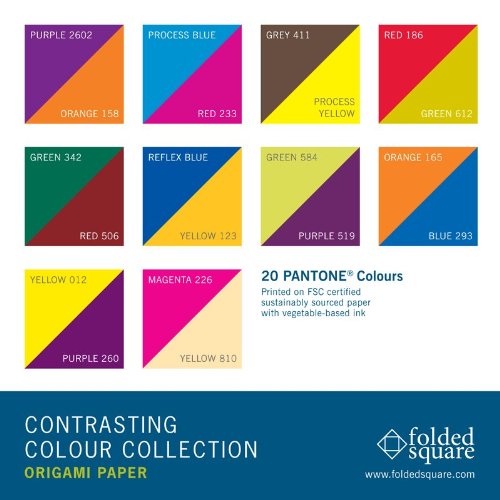 -. Feature : Ten specially selected Pantone / Pantone colour combinations / Ten sheets of each double-sided colour pair / 100 sheets, 150mm (6") precision square, 80gsm weight / Made in the UK from managed sources, FSC-Certified / Presented in our unique hand-folded Origami spiral gift box