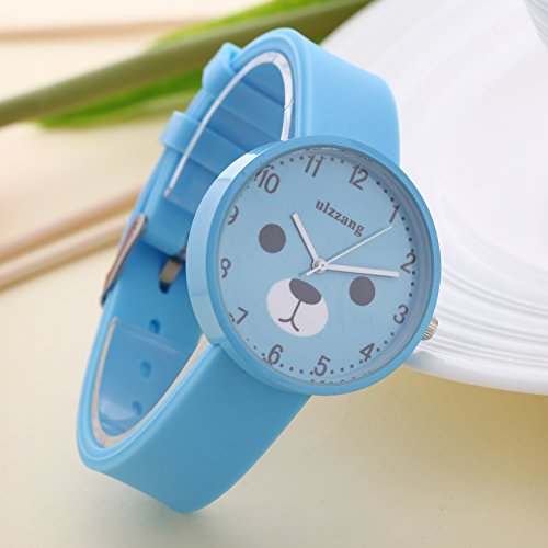-. Title : Creative Cute Bear Pattern Soft Silicone Strap Easy Read Arabic Numerals Round Dial Women Children Girl Boy Wrist Watch