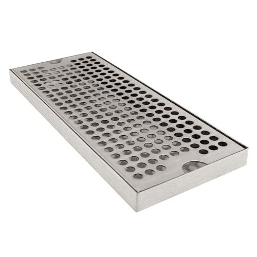 12" SURFACE MOUNT STAINLESS STEEL DRIP TRAY: Designed with style and convenience in mind, this drip tray is constructed from 100% stainless steel and has an attractive brushed finish that will look great on any kegerator. It is dishwasher safe and features a detachable grill for easy cleaning. Because it does not come with a drain, this drip tray is perfect for use where running a drain would be difficult.