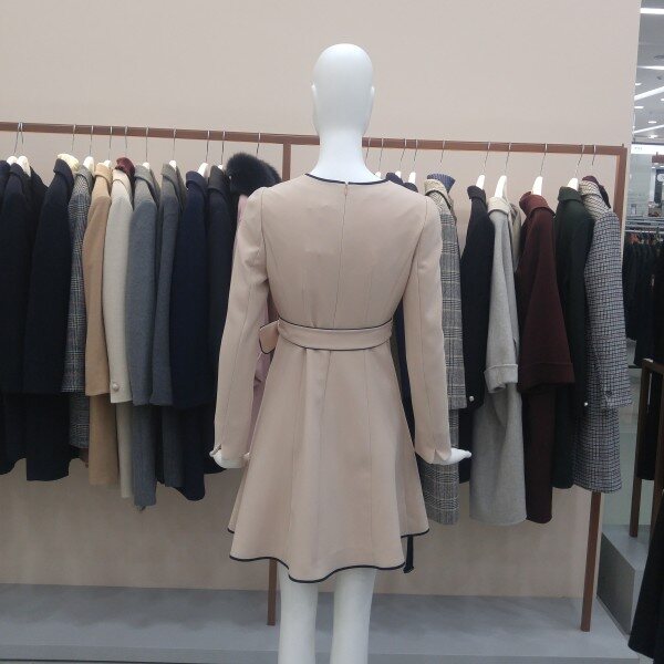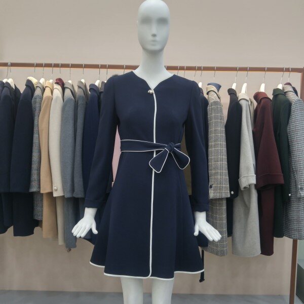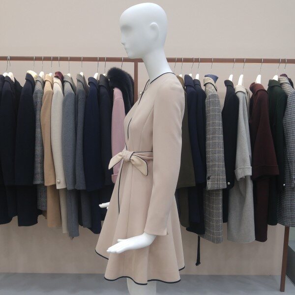 기본A라인 원피스에 테이핑마감으로 포인트를 주었습니다. 허리벨트를 묶어서 좀 더 큐트한 분위로 연출하세요