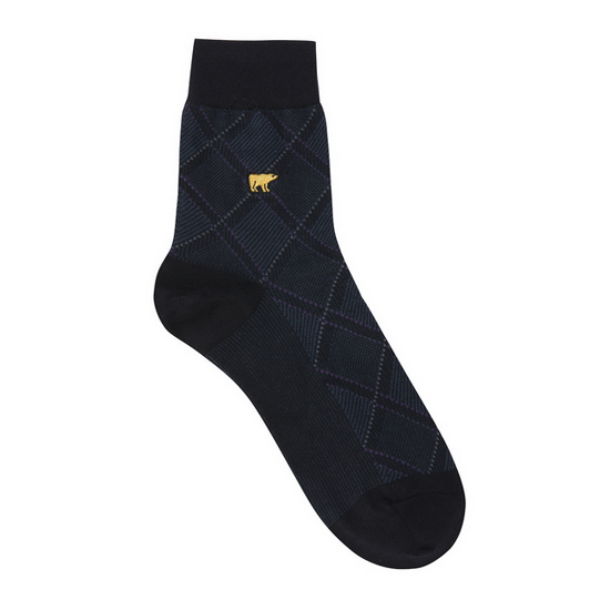 - 배색의 컬러를 적용한 체크 패턴으로 모던한 남성 양말.