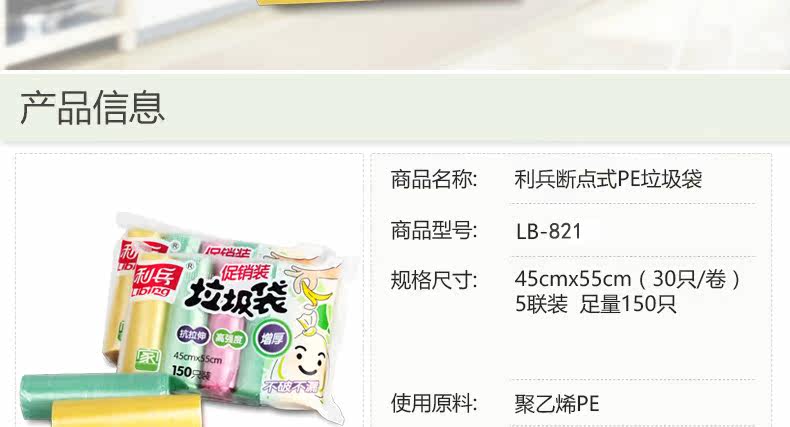 彩色点断式家用厨房垃圾袋清洁袋塑料袋 45*55cm30只/5卷