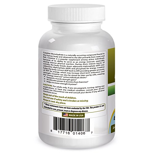-. Binding : Health and Beauty -. Brand : Best Naturals -. EAN : 0764442669859 -. Feature : Enhance Muscle Perfmance / Helps buffer lactic acid buildup / accelerates power & recovery from excercise / Optimizing energy metabolism by maintaining higher levels of the body's energy compound adenosine triphosphate / All Best Naturals products are manufactured in accordance with Good Manufacturing Practices (GMP), among the highest standards in the world -- Proudly Made in USA -- Purity & Potency Guaranteed -. IsAdultProduct : 0 -. Label : Best Naturals -. Manufacturer : Best Naturals -. MPN : 817716014067 -. PackageQuantity : 1 -. PartNumber : 817716014067 -. ProductGroup : Health and Beauty -. ProductTypeName : HEALTH_PERSONAL_CARE -. Publisher : Best Naturals -. Studio : Best Naturals -. Title : Best Naturals Creatine 1000 mg 240 Tablets -. UPC : 764442669859