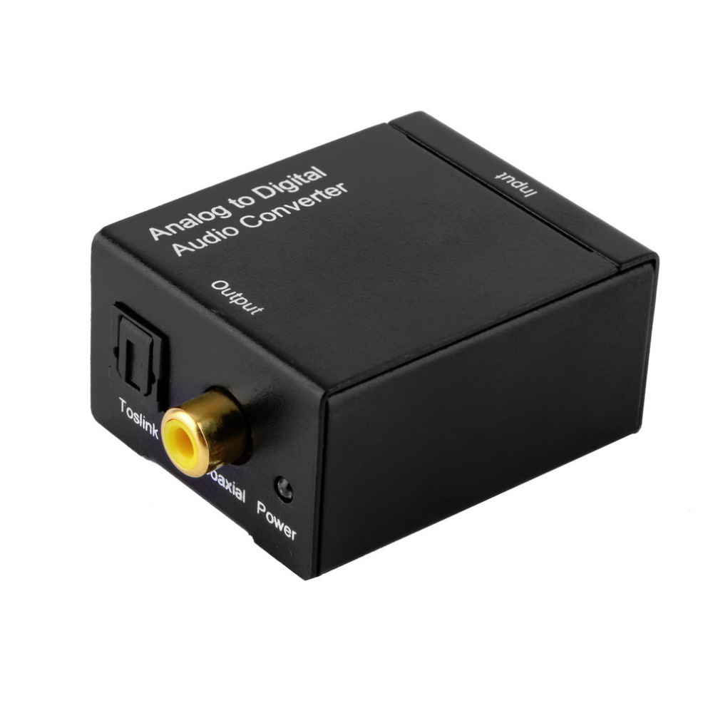 | Features: 100% Brand new and high quality! Convert your analog stereo audio signal from R/L input to Coaxial outputs simultaneously This item is especially designed for either home or professional audio switching. Inputs: Left and Right (Red/White) RCA Stereo Analog Connections Outputs: S/PDIF Digital Coaxial RCA and/or Optical Toslink Connections The output digital audio signal is 2-channel uncompressed LPCM (Linear Pulse Code Modulation) with sampling rate at 48 Khz Easy to Install Compact Size Specifications: Input Audio: Stereo R/L Output Audio: LPCM Input audio connector: 2xRCA(R/L) Output audio connector: Toslink 1xRCA(Coaxial) External Power Supply: 5V DC 1A Power consumption: 0.5 watts(max) AC Power Adapter: US Standard Material: Alloy Size: approx. 51 x 41 x 25mm(L-W-H) Color: Black Net Weight: approx. 140g Package includes: 1 x Analog to Digital Audio Converter 1 x Power Supply Adapter(US Plug) |