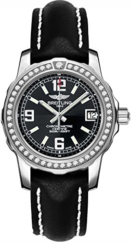 -. Title : Breitling Colt Lady Diamond Women's Watch on Black Leather Strap A7738753/BB51-408X