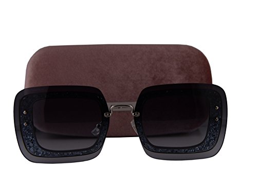 Miu Miu MU01RS Sunglasses Grey Glitter Crystal w/Blue Gradient Lens UES4R2 MU 01RS For Women