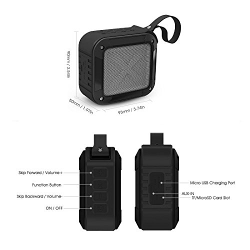 ►Ready for all kinds of activity except diving:Our Bluetooth Speakers Waterproof level IPX5- Protected against low pressure water stream from any angle. Not Diving, but should withstand accidental drop in water. Guarantees that it will stay safe in the shower, in the rain or by the pool