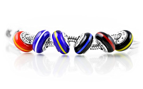 -. Feature : Stamped RED SERGE PROUD / Threaded Core for Added Security / Genuine Handcrafted Sterling Silver for Quality / Fused Italian Glass for Durability / Fits , Biagi, Chamilia, Kay Jeweler, Charmed Memories Bracelets and Many More!
