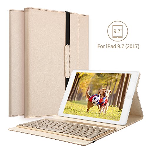 -. Title : 2017 New iPad 9.7 Keyboard Case, KVAGO Elegant Protective Cover with 7 Colors Back-lit Detachable Wireless Bluetooth Keyboard Case for New iPad 9.7 inch (Not Pro) -Gold