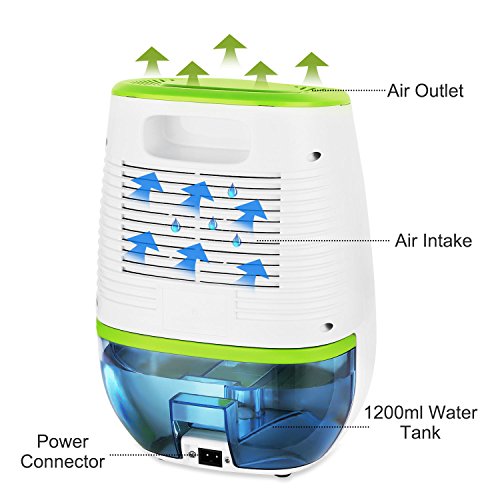 【1200ml/40oz Dehumidification Capability】The dehumidifiers is equipped with a removable water tank of 1200ML capacity and removes moisture up to 300ML per day, ideal for daily used
