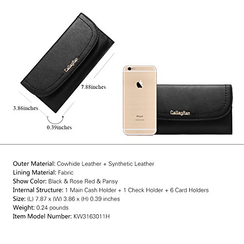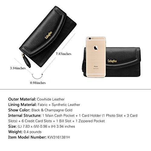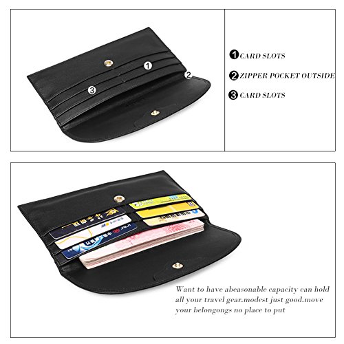 -. Feature : [MAIN MATERIAL]: This wallet is made of high quality PU leather. / [INTERNAL STRUCTURE]: 4 Cash Slot Pocket + 1 Interior Zipper Pocket + 2 Photo Slot Pockets + 14 Card Slot Pockets. Practical multi slots wallets are apt to hold cash, credit cards, checks, coin,and other petty things. / [HARDWARE & LINING &CLOSURE]: Classic pale gold hardware, the lining material is polyester. Buckle opening closure which makes the pu leather wallet fashionable. / [DIMENSIOINS & WEIGHTS]: 7.68 x 1.18 x 3.94(LxWxH) inches, 0.36 pounds, a lightweight wallet is easy to carry. / [GUARANTEE]: If this item doesn't meet your expectations, please do not hesitate to inform us, and our service team will provide best solution. For quality problems or defective items, there are full refunds or free replacement for you.