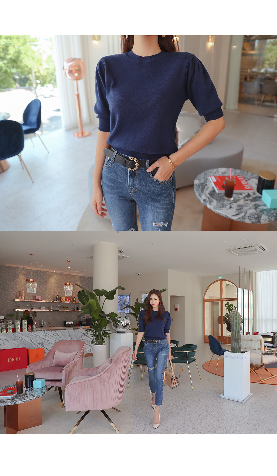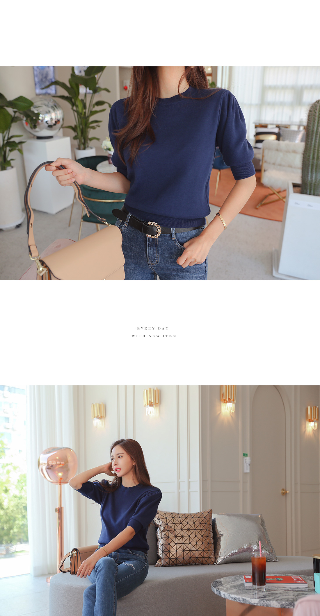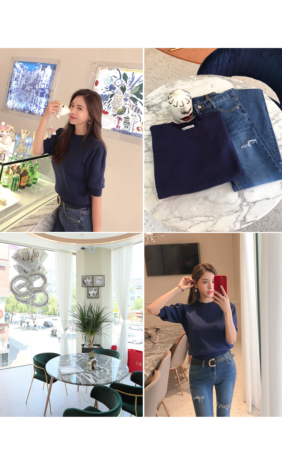 MD COMMENT 데일리하게 입기 좋은 퍼프 소매 니트를 소개합니다.심플하고 깔끔한 라운드 네크라인에퍼프 소매 디자인이 포인트로 더해져어깨 라인을 한층 더 예쁘게 잡아주며여성스러운 무드를 더한 니트 아이템랍니다.스커트, 팬츠 등 다양한 하의 들과두루두루 매치하기 좋으며나시 원피스와 함게 레이어드하여 착용해도예쁘게 잘 어울려요.부드럽고 신축성 좋은 소재로 제작되어편안한 착용감을 자랑하며6가지 다양한 컬러들로 구성되어선택의 폭을 넓혔답니다.COLOR/SIZE 네이비,브라운,아이보리,그린,핑크,퍼플FREEMODEL FITTING 네이비/FREE